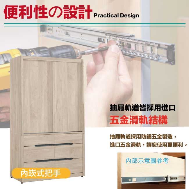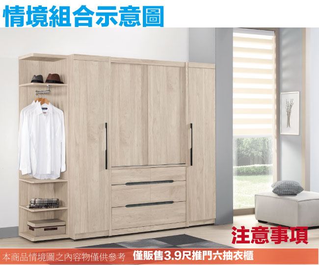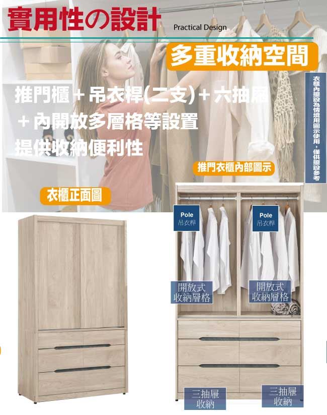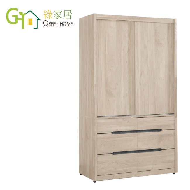 【綠家居】比克坡3.9尺六抽推門衣櫃/收納櫃