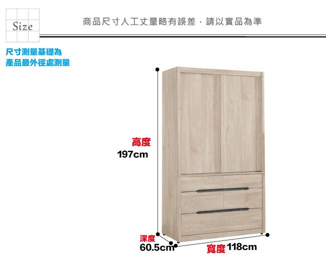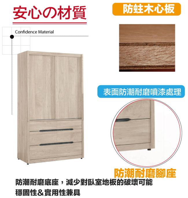 材質 | ◆產品名稱:【綠家居】比克坡3.9尺六抽推門衣櫃/收納櫃 尺寸:(寬)118(深)60.5(高)197公分 ◆材質: 材質:防蛀木心板+防潮耐磨腳座+五金滑軌結構 噴漆:防潮耐磨噴漆處理