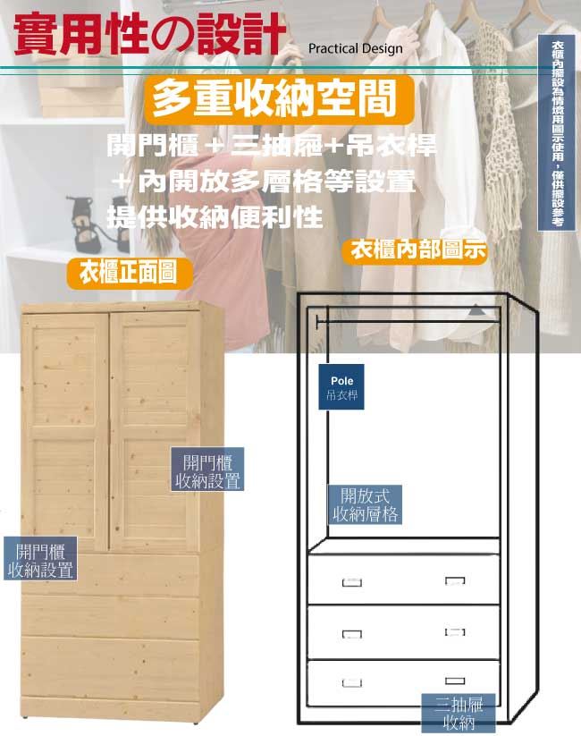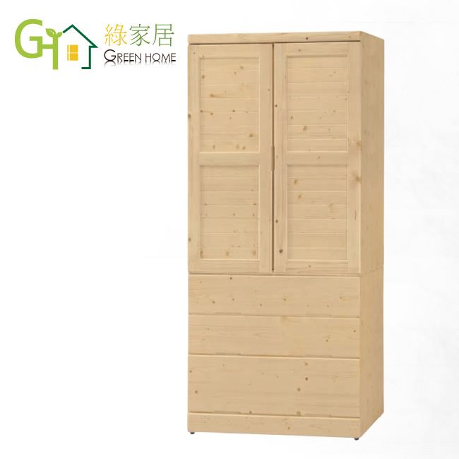 【綠家居】沛可3尺實木二門三抽衣櫃
