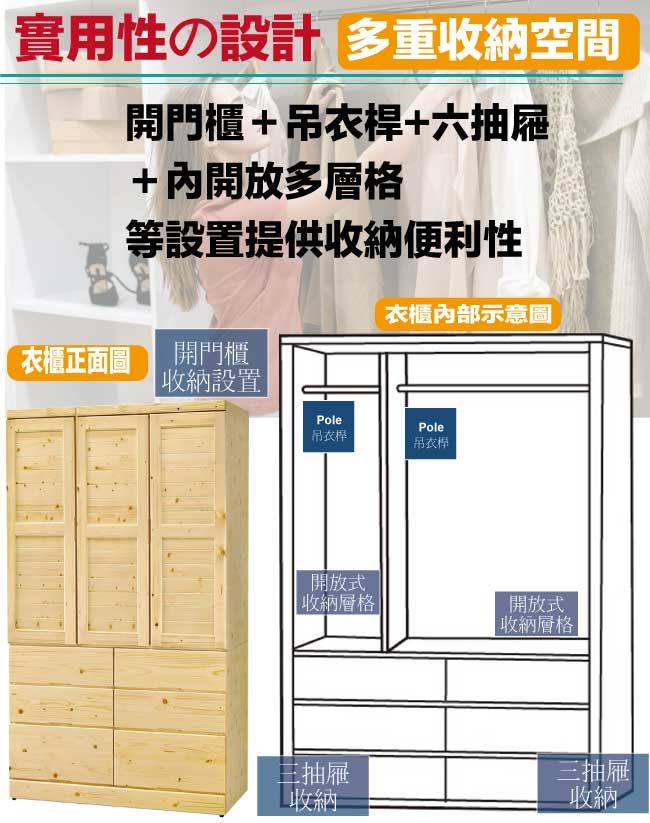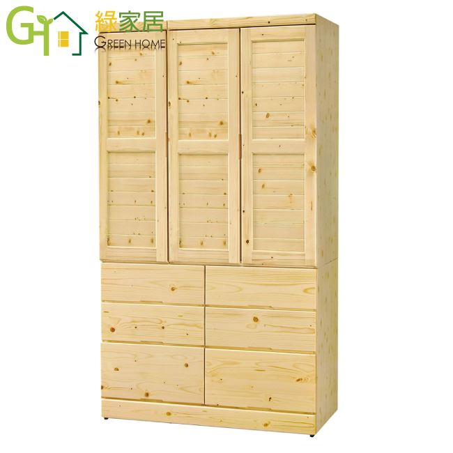 【綠家居】亞湯卡3.9尺實木三門六抽衣櫃