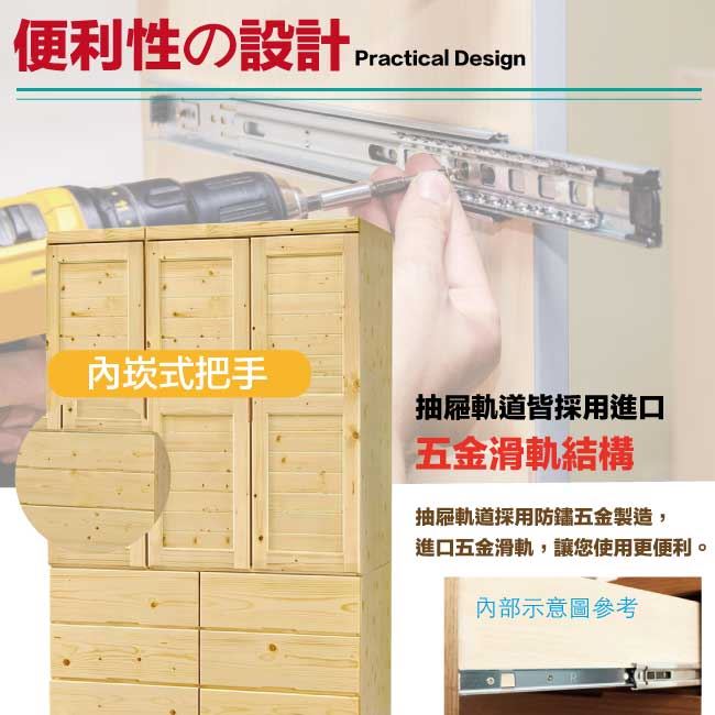 松木紋色系+五金滑軌結構