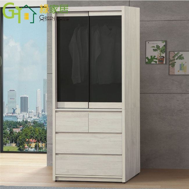 【綠家居】麗納3尺玻璃推門四抽衣櫃