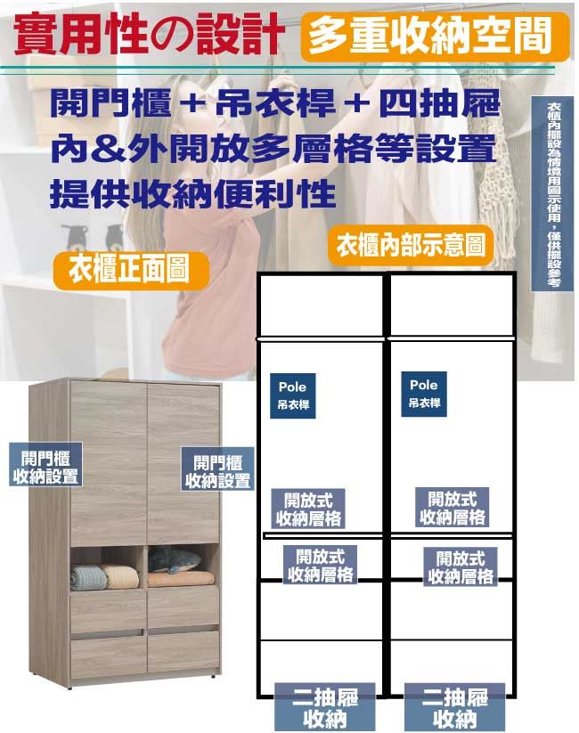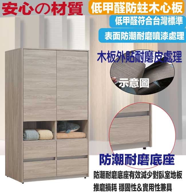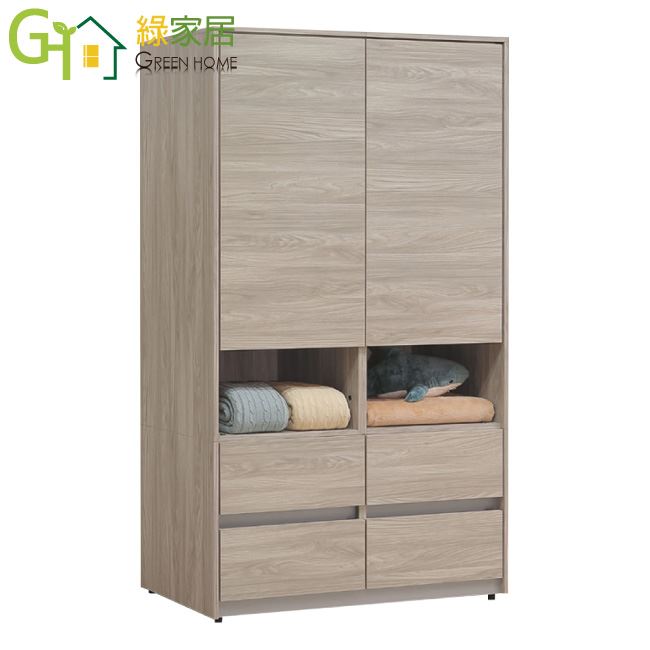 【綠家居】海洛3.9尺二門四抽中空衣櫃