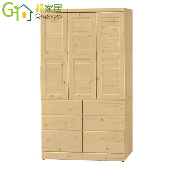 【綠家居】范斯3.9尺實木三門六抽衣櫃