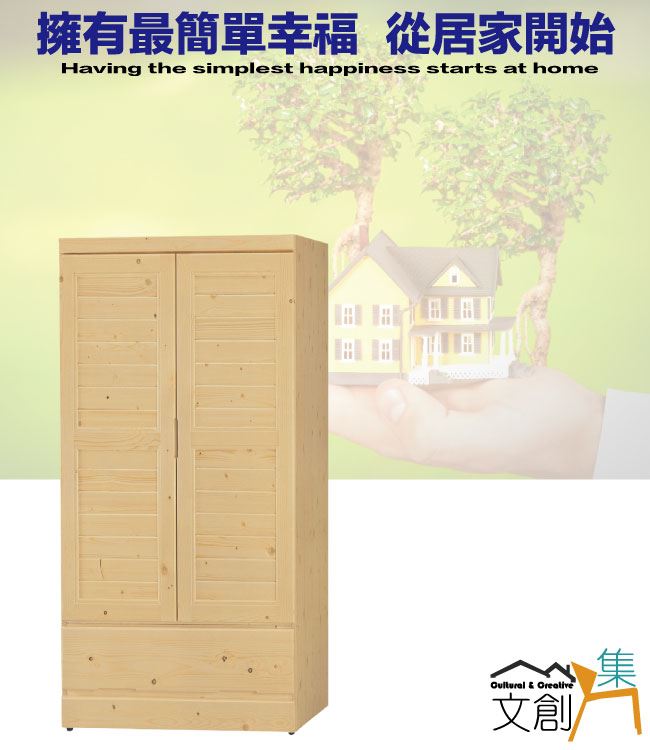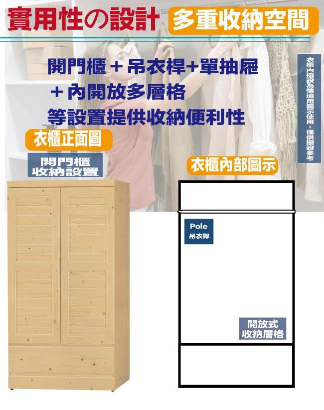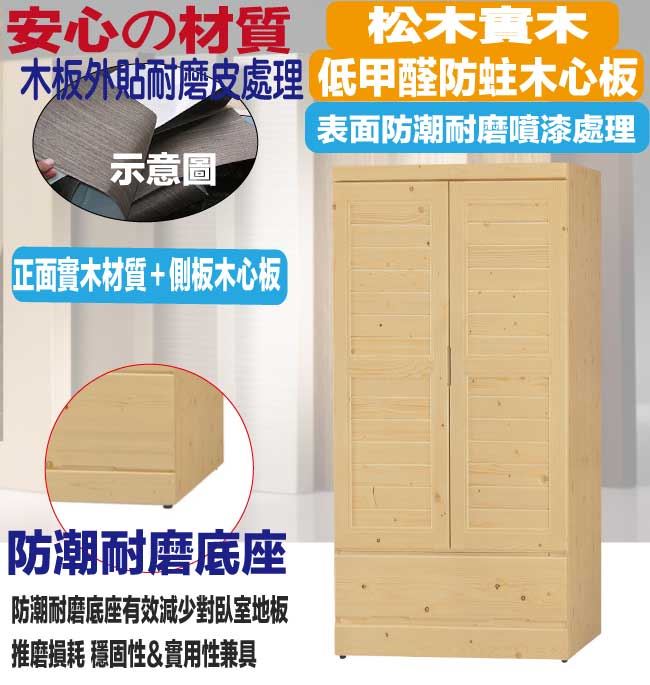 【綠家居】范斯3尺實木二門單抽衣櫃