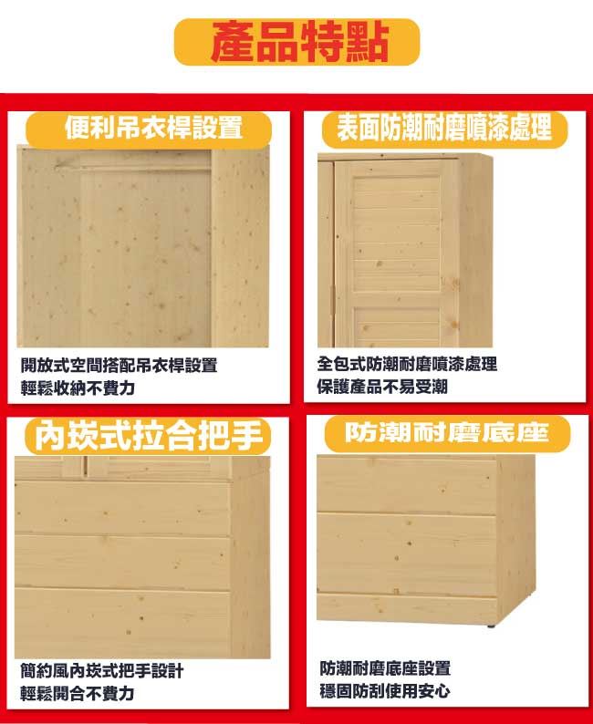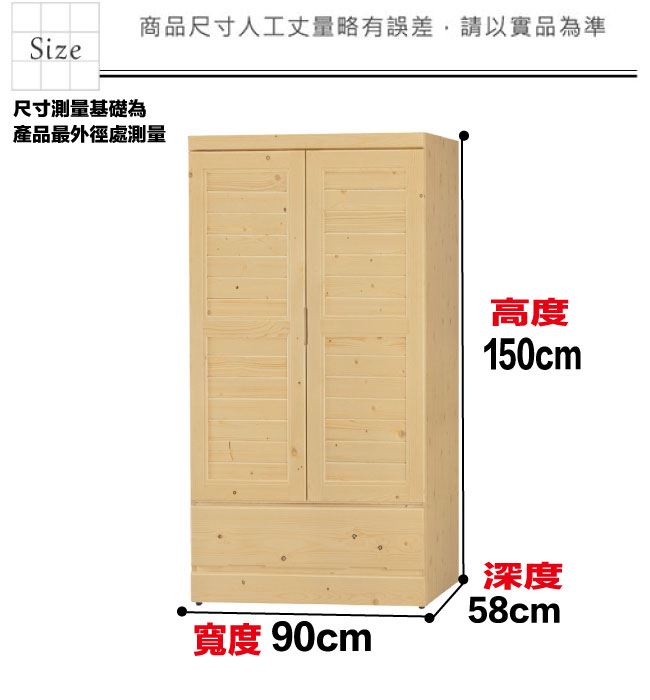 材質 | ◆產品名稱:【綠家居】范斯3尺實木二門單抽衣櫃 尺寸:(寬)90x(深)58x(高)150/公分 ◆材質: 材質:松木實木+防蛀木心板+防潮耐磨底座+五金滑軌結構 噴漆:防潮耐磨噴漆處理 |