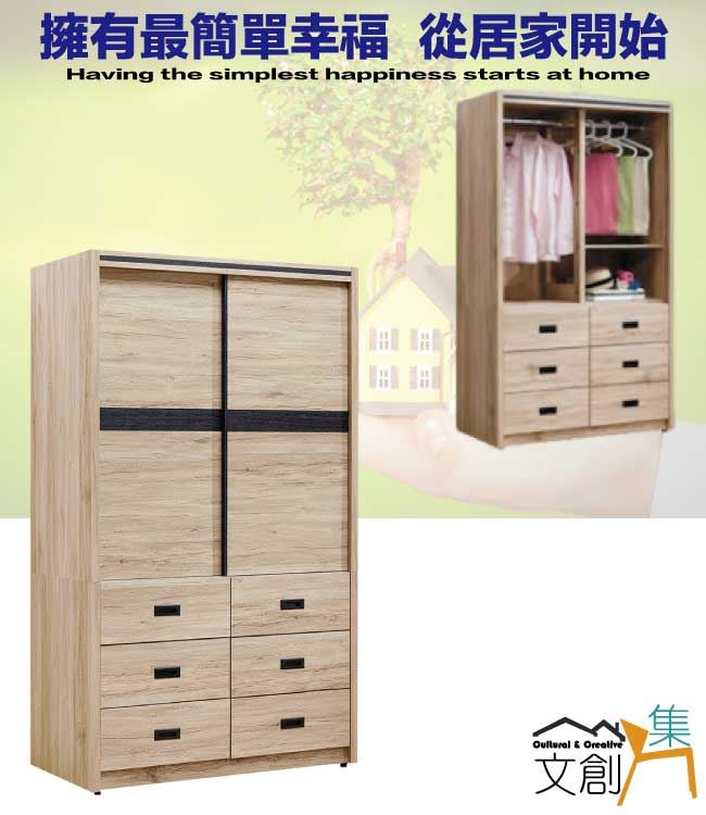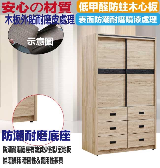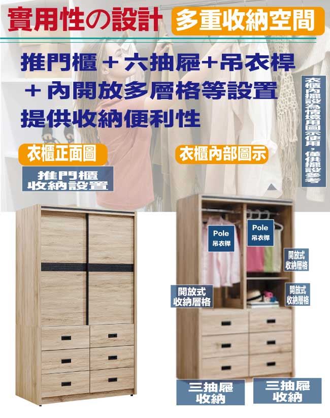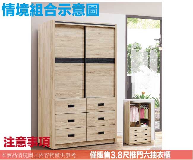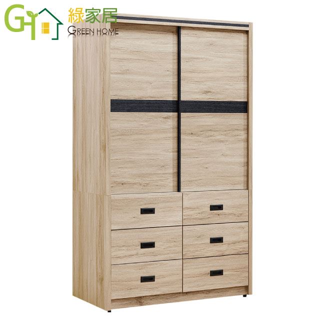 【綠家居】克提拉3.8尺推門六抽衣櫃