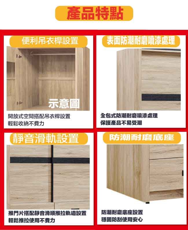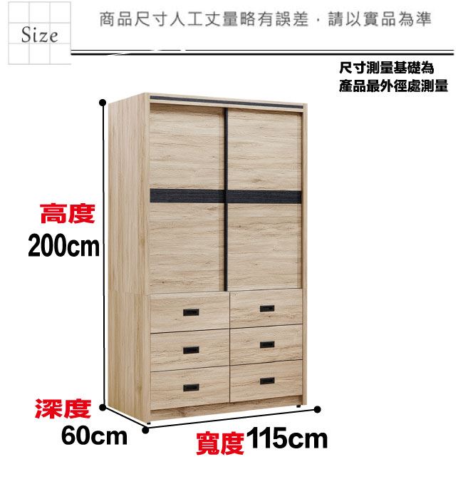 材質 | ◆產品名稱:【綠家居】克提拉3.8尺推門六抽衣櫃 尺寸:(寬)115x(深)60x(高)200/公分 ◆材質: 材質:防蛀木心板+防潮耐磨底座+五金滑軌結構 噴漆:防潮耐磨噴漆處理 |