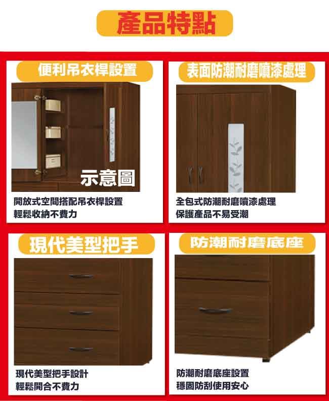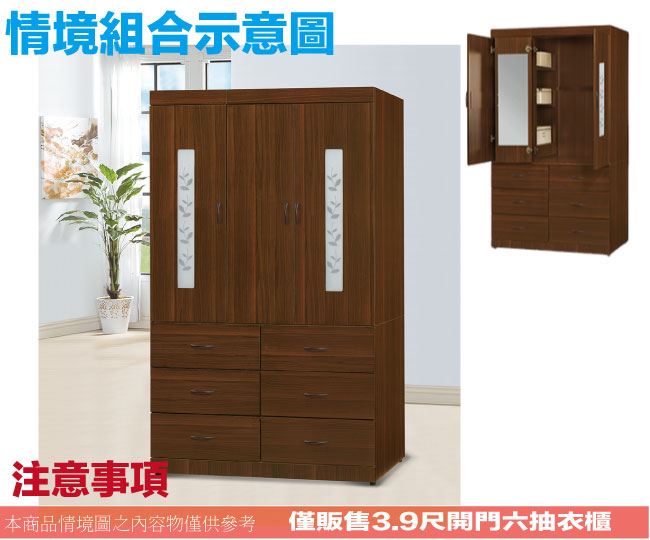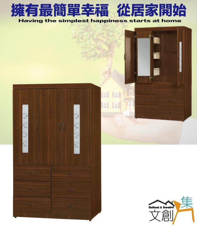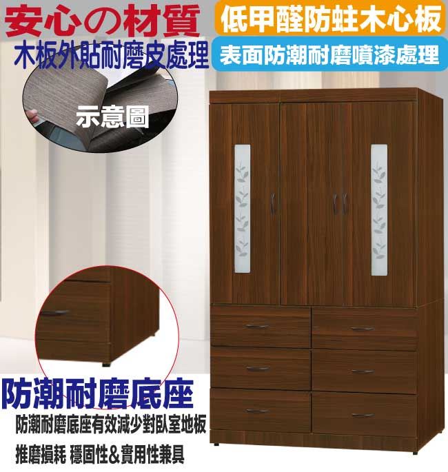 商 品 介 紹 | 【綠家居】桑亞3.9尺三門六抽衣櫃 淺胡桃木紋色系+現代簡約風格+安心材質製造,使用放心+搭配居家更便利,整體採用防蛀木心板+防潮耐磨底座+五金滑軌結構等安心材質製造搭配外層採用優莉坦耐磨全包式噴漆處理 ,採用開門櫃+吊衣桿+六抽屜+內開放層格等收納空間設計,全由專人配送到家,專業安心服務,替你省下更多時間! 【商品特色】 淺胡桃木紋色系+現代簡約風格+安心材質製造,使用放心+搭配居家更便利 防蛀木心板+防潮耐磨底座+五金滑軌結構等安心材質製造 採用開門櫃+吊衣桿+六抽屜+內開放層格等收納空間設計 此商品不需要DIY組立,此商品為組立後之成品 品質保證、專業設計、貼心服務 全由專人配送到家,專業安心服務,替您省下更多時間