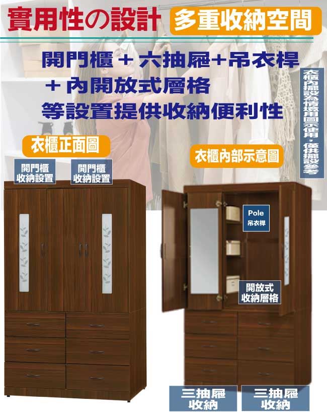 【綠家居】桑亞3.9尺三門六抽衣櫃