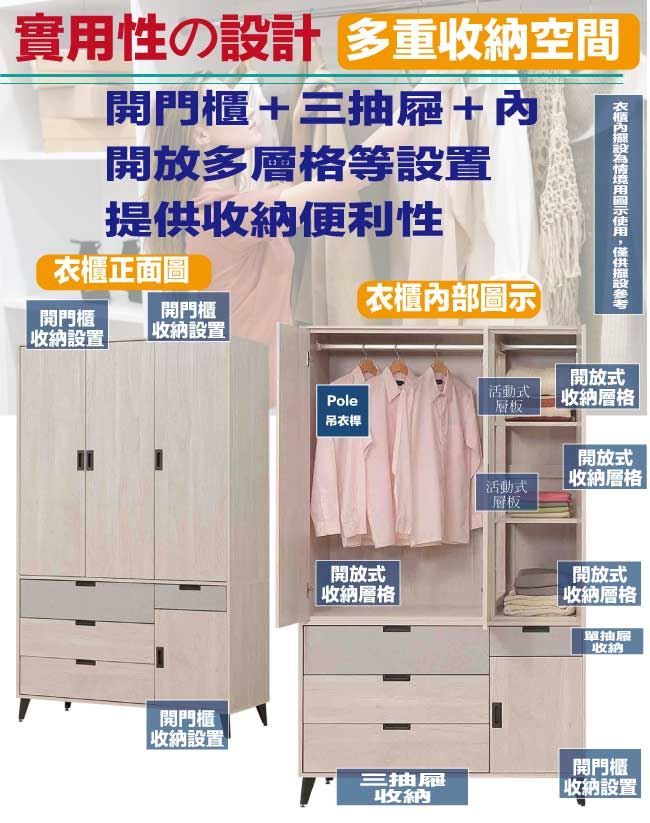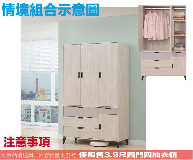 【綠家居】達斯3.9尺四門四抽衣櫃