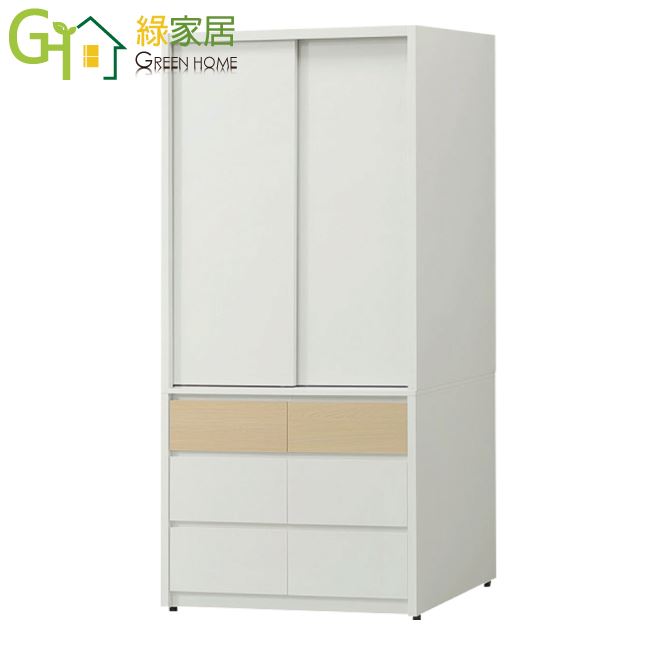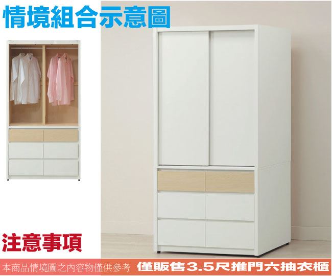 【綠家居】歐瑞雙色3.5尺開&推門六抽加高衣櫃組合
