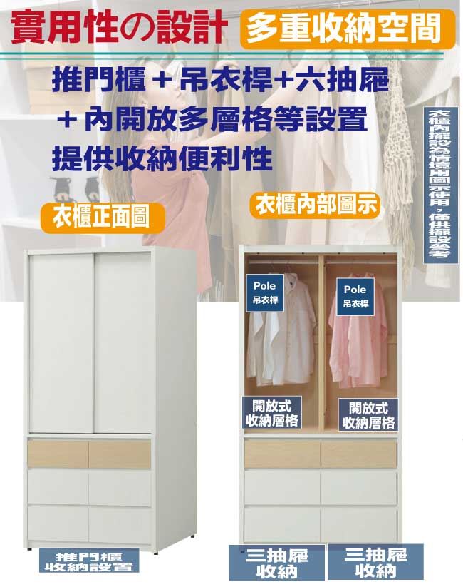 開門櫃&推門櫃+吊衣桿+六抽屜