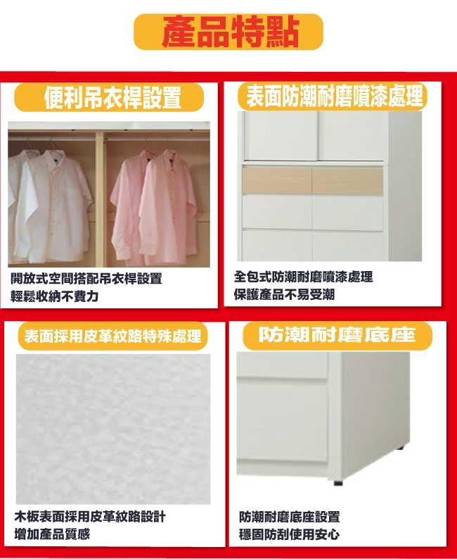 商 品 介 紹 | 【綠家居】歐瑞雙色3.5尺開&推門六抽加高衣櫃組合 木紋雙色系+安心材質製造,使用放心+搭配居家更便利,採用防蛀木心板+防潮耐磨底座+防夾手緩衝門片五金+五金滑軌結構+白色面板外層採用皮革紋路特殊處理等安心材質製造 ,外層採用防潮耐磨噴漆處理搭配採用開門櫃&推門櫃+吊衣桿+六抽屜+內開放層格等收納空間設計,全由專人配送到家,專業安心服務,替你省下更多時間! 【商品特色】 木紋雙色系+安心材質製造,使用放心+搭配居家更便利 採用防蛀木心板+防潮耐磨底座+防夾手緩衝門片五金+五金滑軌結構+白色面板外層採用皮革紋路特殊處理等安心材質製造 搭配採用開門櫃&推門櫃+吊衣桿+六抽屜+內開放層格等收納空間設計 此商品不需要DIY組立,此商品為組立後之成品 品質保證、專業設計、貼心服務 全由專人配送到家,專業安心服務,替您省下更多時間