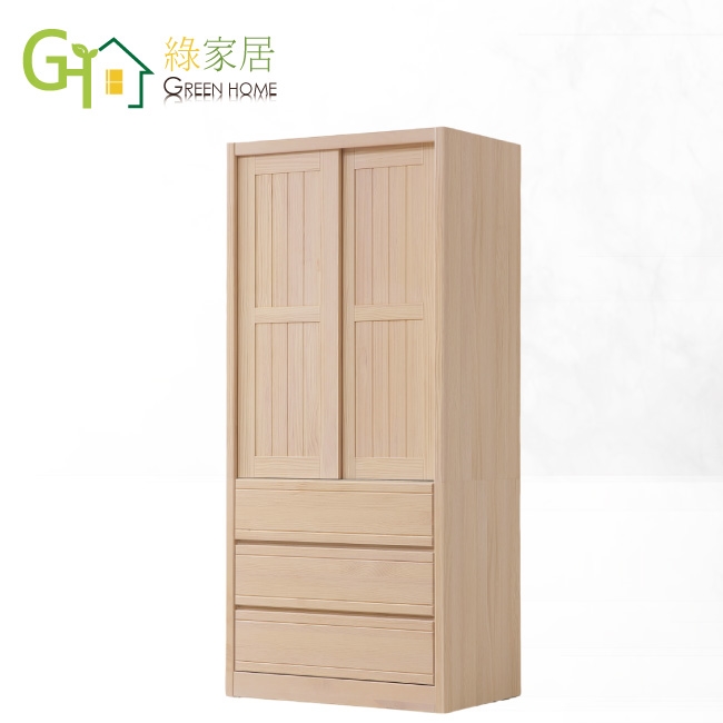 【綠家居】希望3尺實木推門三抽衣櫃
