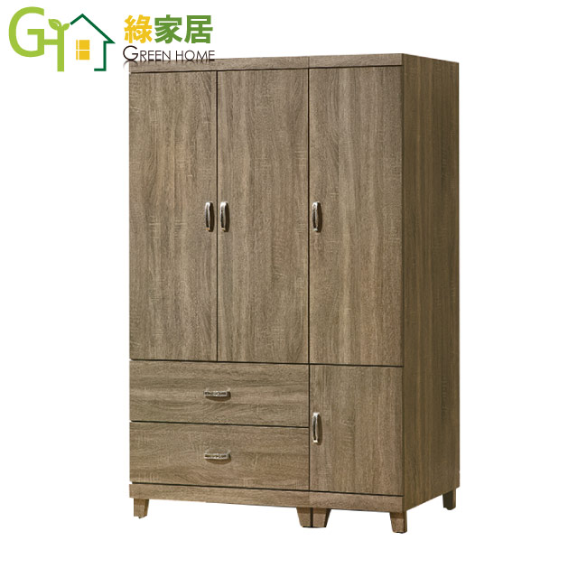 【綠家居】米爾 時尚3.9尺木紋四門衣櫃/收納櫃(吊衣桿+二抽屜)