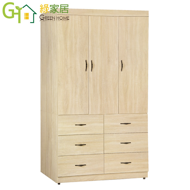 【綠家居】馬泰夫 時尚3.8尺三門六抽衣櫃/收納櫃(二色可選+含穿衣鏡)