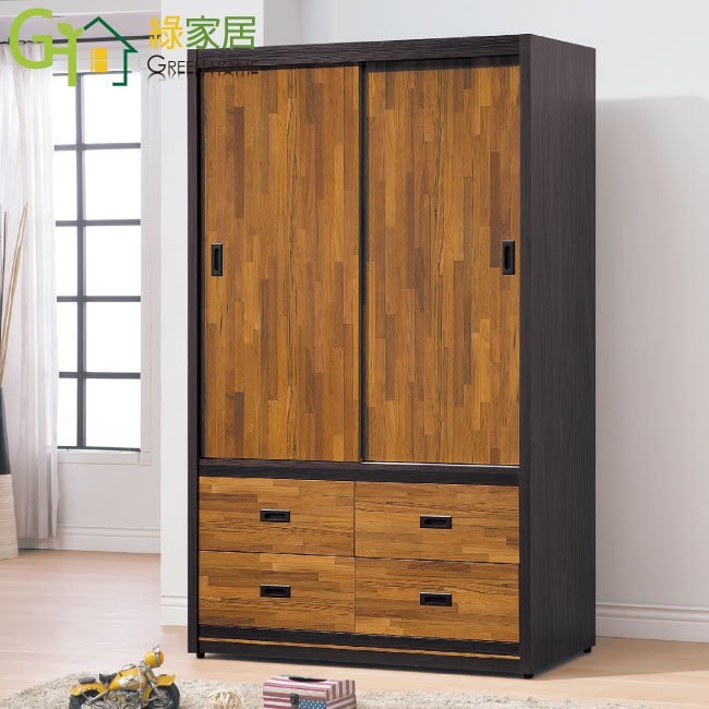 【綠家居】拉多夫 時尚3.9尺木紋雙色四抽衣櫃(四抽屜+單吊桿)