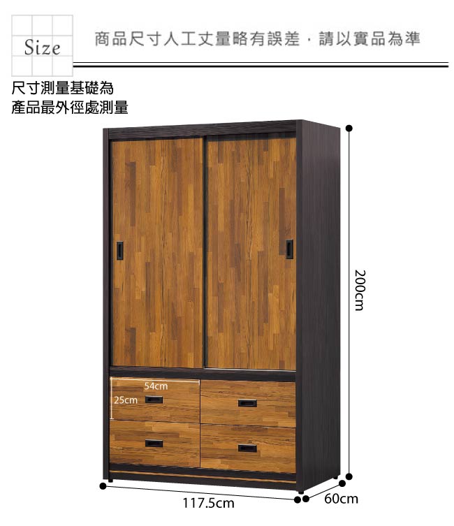 ◆產品名稱:【綠家居】拉多夫 時尚3.9尺木紋雙色四抽衣櫃(四抽屜+單吊桿)