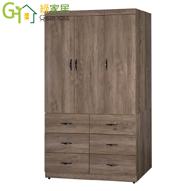【綠家居】普可 時尚3.8尺三門六抽衣櫃/收納櫃(含穿衣鏡)