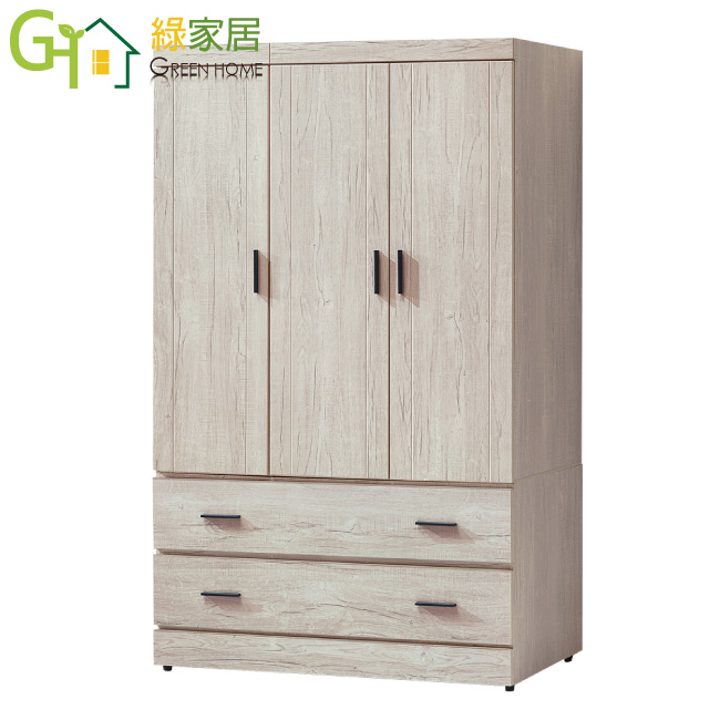 【綠家居】莫喬伊 時尚3.8尺三門二抽衣櫃/收納櫃(二色可選)