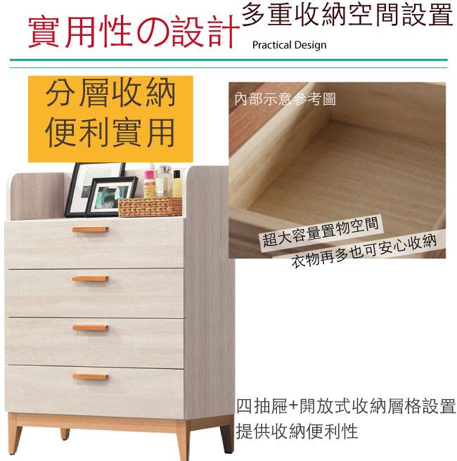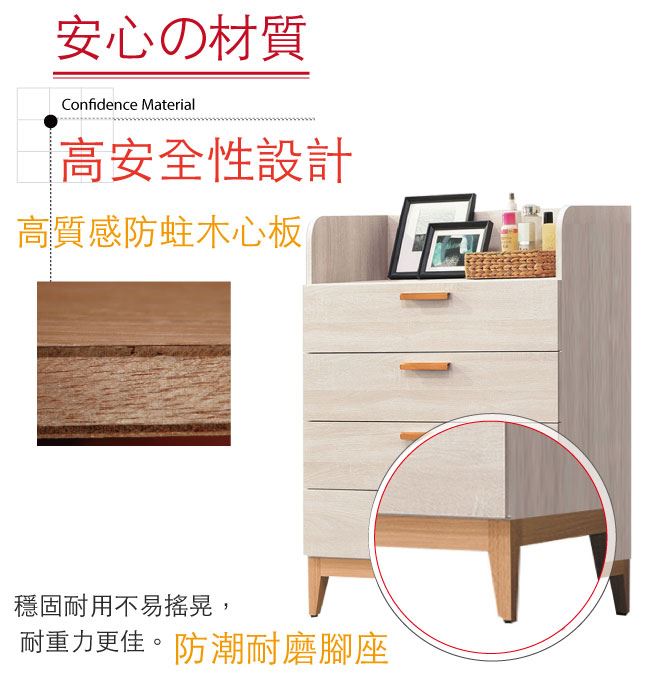 商品介紹 | 【綠家居】伊森瑪 現代2.7尺木紋四斗櫃/收納櫃 木紋雙色系+現代簡約風格+安心材質製造,整體採用防蛀木心板+防潮耐磨腳座+五金滑軌結構等安心材質製造,外層採用優利坦全包式耐磨噴漆處理搭配四抽屜+開放式收納等收納設計,全由專人配送到家,專業安心服務,替你省下更多時間! 【商品特色】 木紋雙色系+現代簡約風格+安心材質製造,使用放心+搭配居家更便利 採用防蛀木心板+防潮耐磨腳座+五金滑軌結構等安心材質製造 四抽屜+開放式收納等收納設計 此商品不需要DIY組立,此商品為組立後之成品 品質保證、專業設計、貼心服務 全由專人配送到家,專業安心服務,替您省下更多時間 |