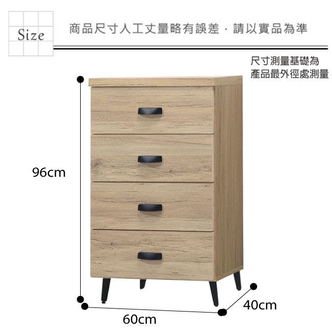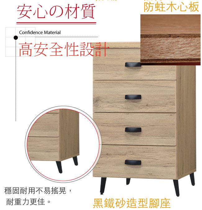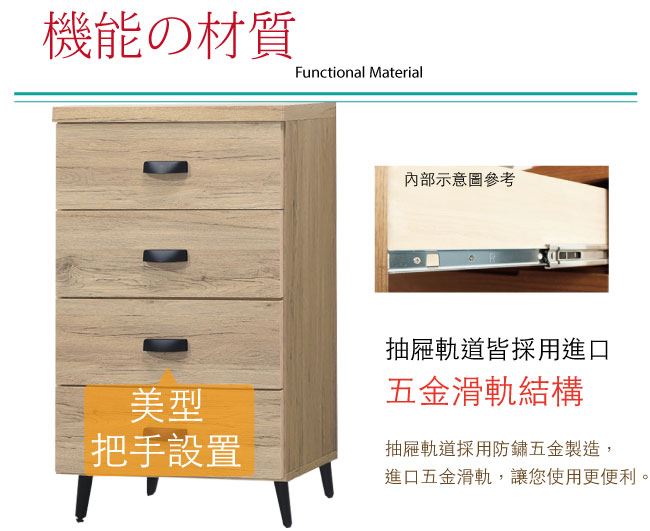 材質 | ◆產品名稱: 【綠家居】奧庫 橡木紋2尺四抽斗櫃 尺寸:(寬)60x(深)40x(高)96/公分 ◆材質: 材質:防蛀木心板+黑鐵砂腳座+五金滑軌結構 噴漆:防潮耐磨噴漆處理
