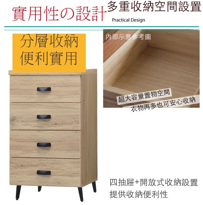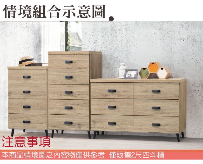 【綠家居】奧庫 橡木紋2尺四抽斗櫃