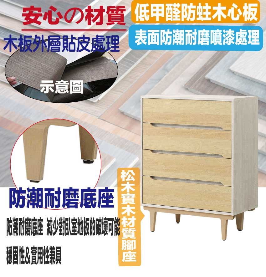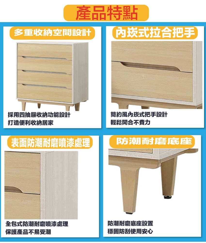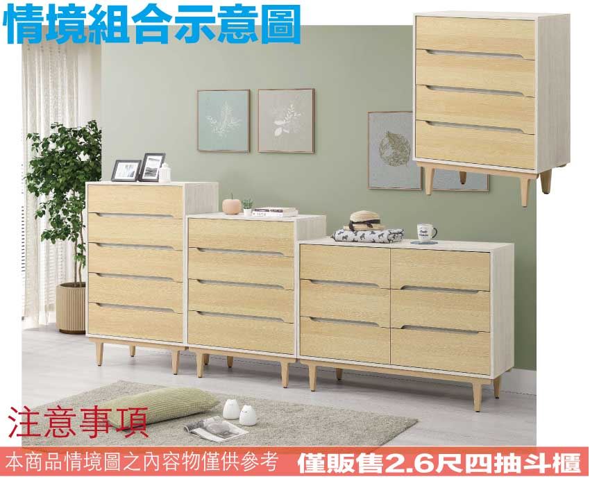 - ◆產品名稱:【綠家居】菲可2.6尺四抽雙色斗櫃