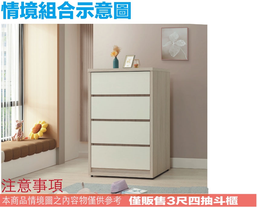 - ◆產品名稱:【綠家居】美斯3尺四抽斗櫃
