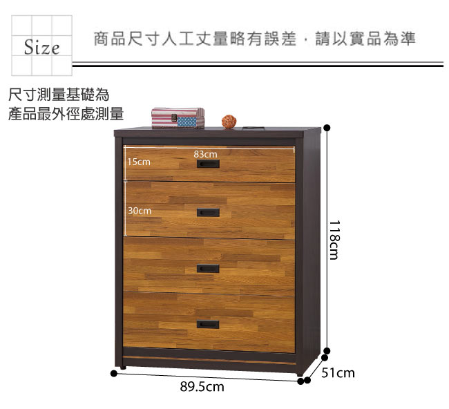 ◆產品名稱:【綠家居】艾里許 時尚3尺木紋雙色四斗櫃/收納櫃