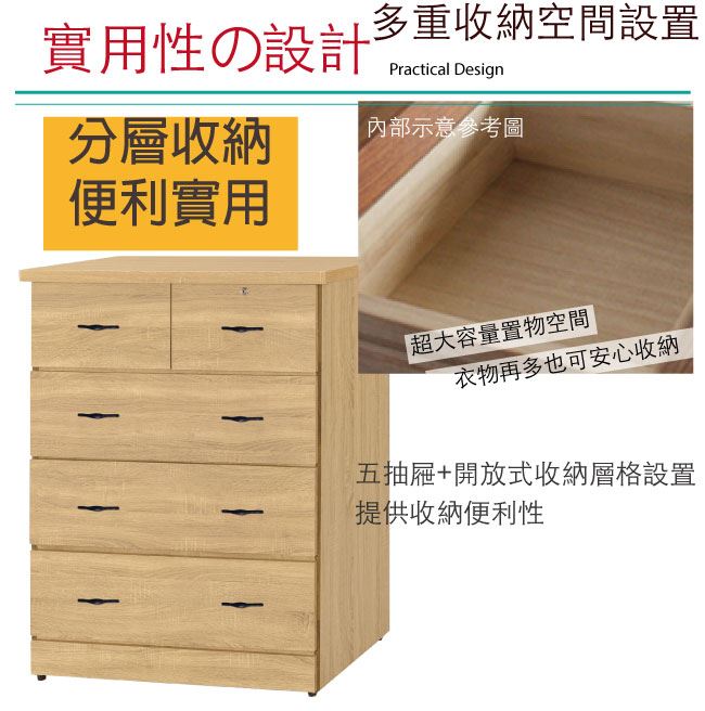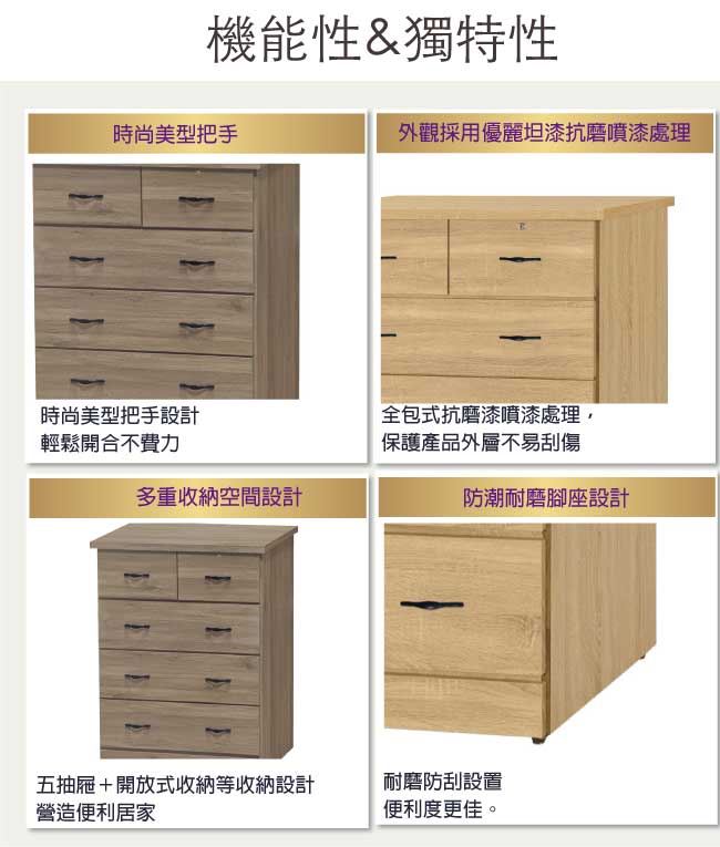 - 五抽屜+開放式收納