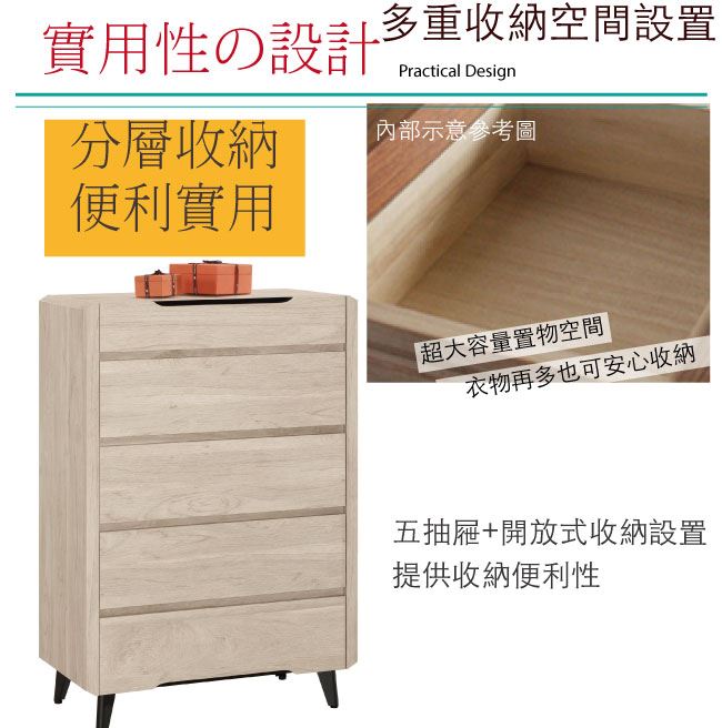 商品介紹 | 【綠家居】卡蘭 淺橡2.7尺五抽斗櫃/收納櫃 淺橡木紋色系+現代簡約風格+安心材質製造,鏡台整體採用防蛀木心板+五金滑軌結構+黑鐵砂腳座等安心材質製造,外層採用優利坦全包式耐磨噴漆處理搭配五抽屜+開放式收納等收納空間設計,全由專人配送到家,專業安心服務,替你省下更多時間! 【商品特色】 淺橡木紋色系+現代簡約風格+安心材質製造,使用放心+搭配居家更便利 鏡台採用防蛀木心板+五金滑軌結構+黑鐵砂腳座等安心材質製造 五抽屜+開放式收納等收納空間設計 此商品不需要DIY組立,此商品為組立後之成品 品質保證、專業設計、貼心服務 全由專人配送到家,專業安心服務,替您省下更多時間 |