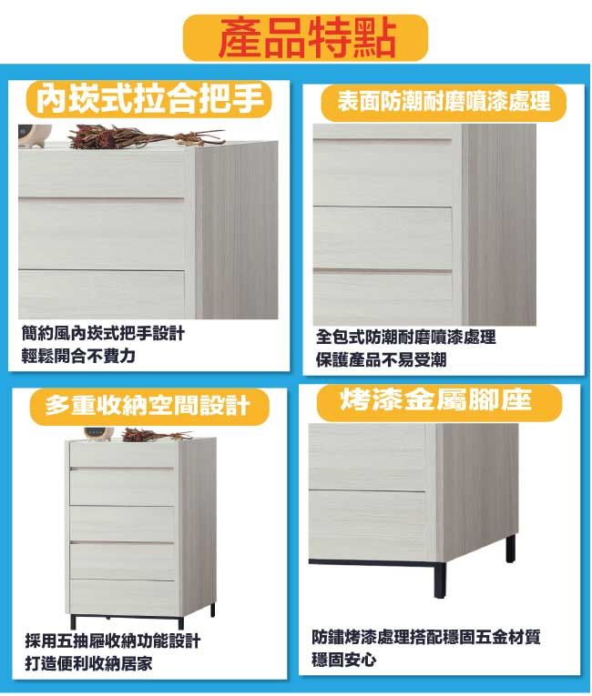【綠家居】羅利安2.7尺五抽斗櫃