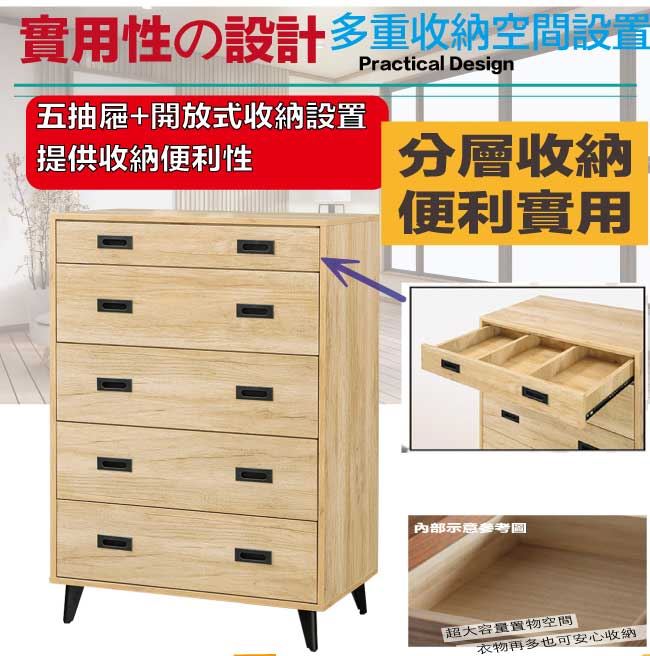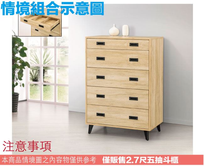 【綠家居】萊希2.7尺五抽斗櫃