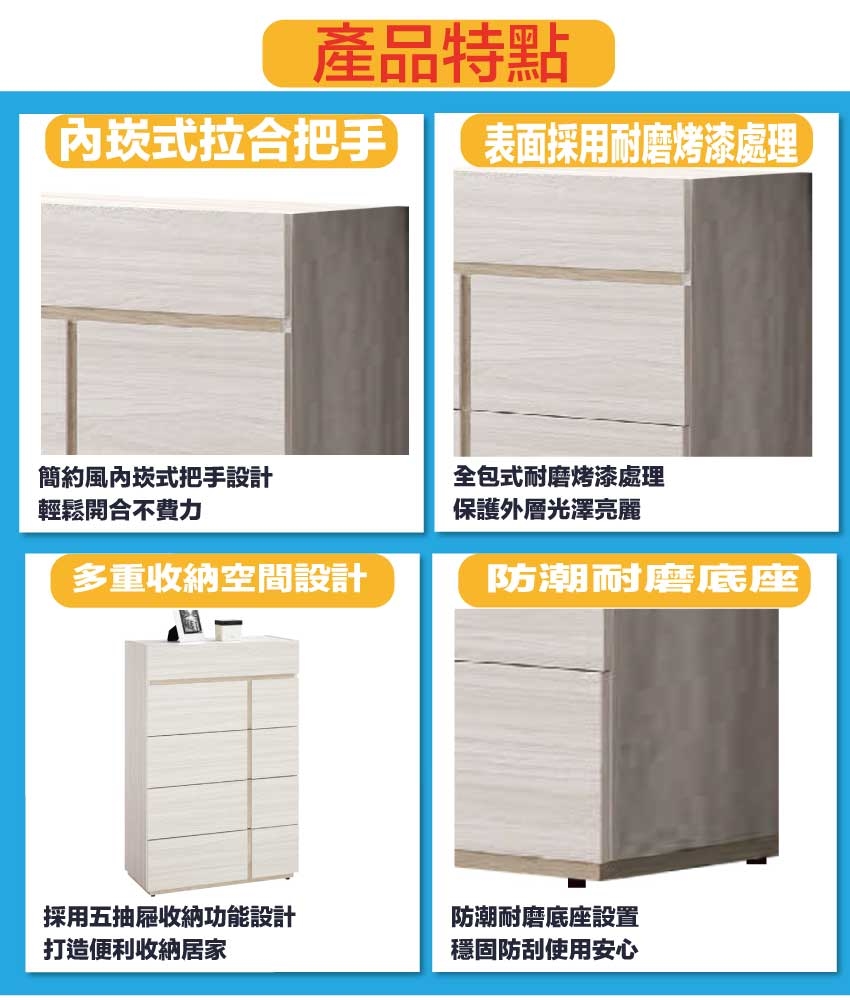 - ◆產品名稱:【綠家居】寶亞2.5尺雙色五抽斗櫃