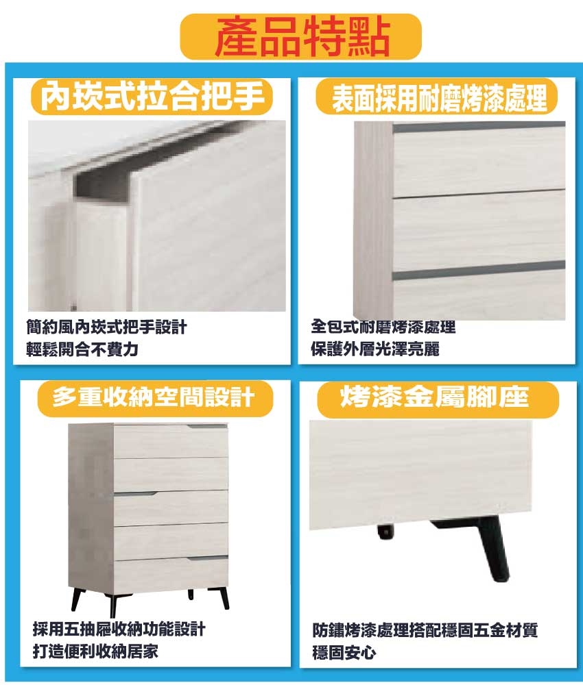 - ◆產品名稱:【綠家居】丹尼2.7尺五抽斗櫃