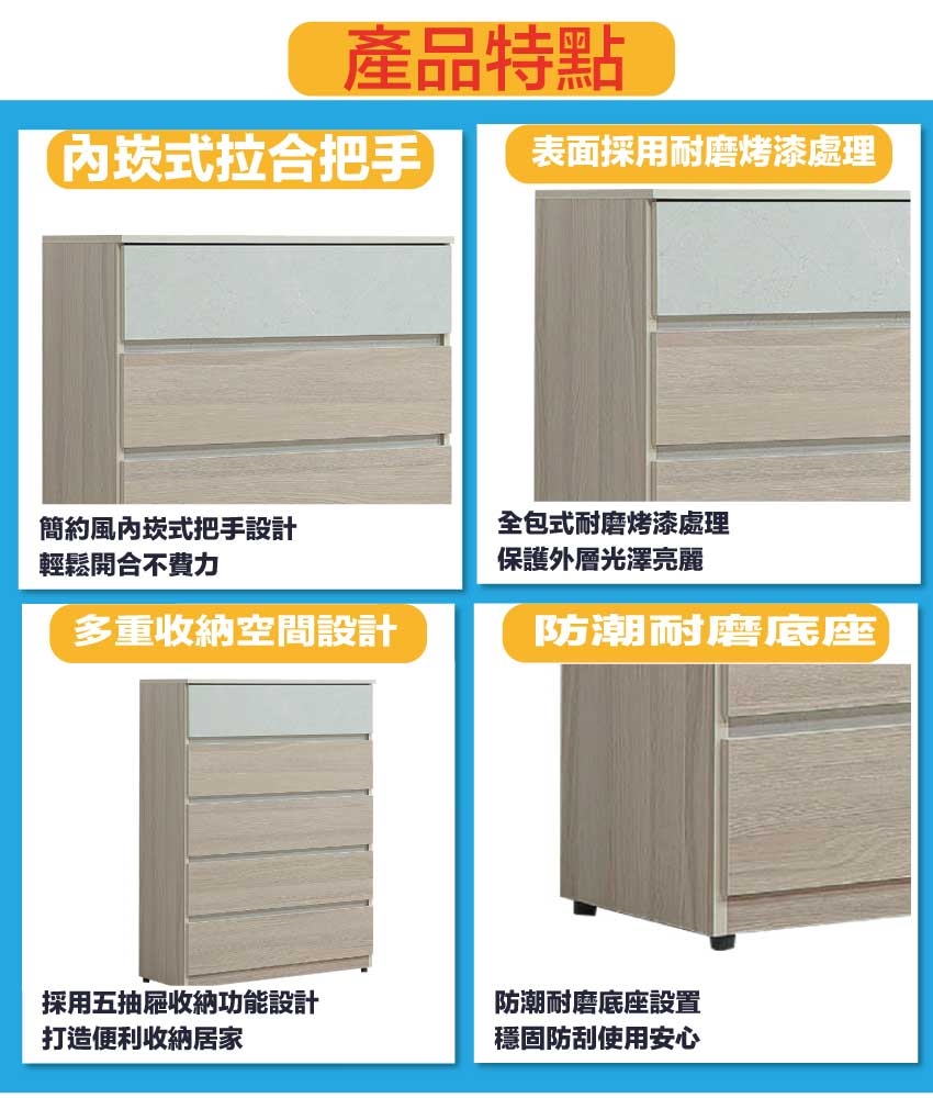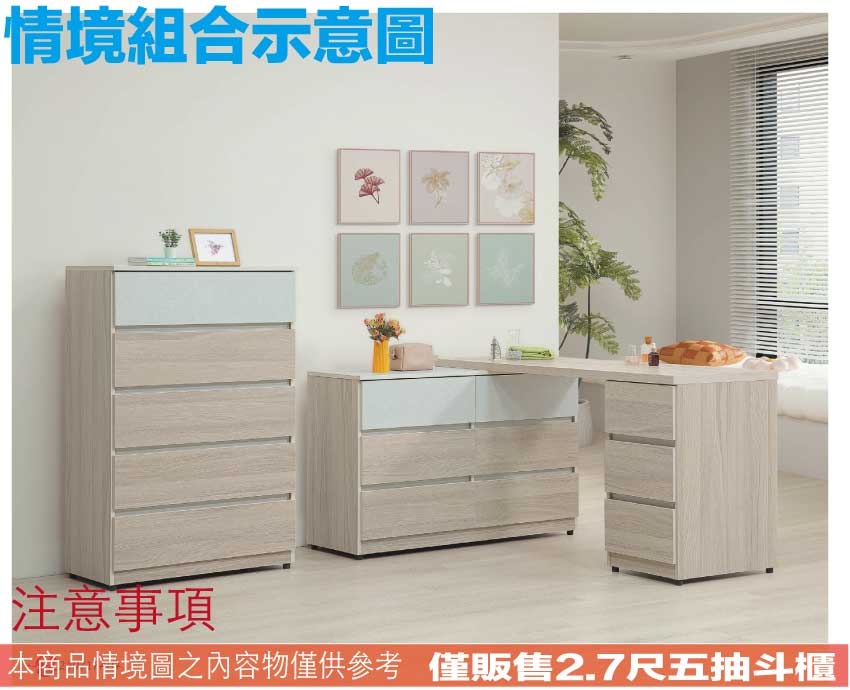 - ◆產品名稱:【綠家居】范巴2.7尺五抽斗櫃