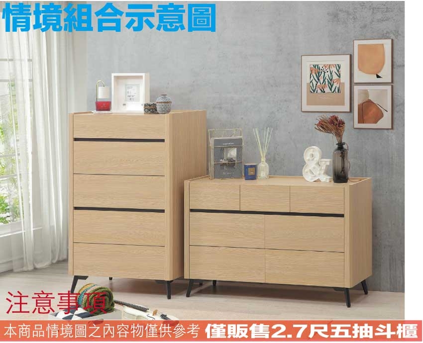 - ◆產品名稱:【綠家居】巴米2.7尺五抽斗櫃