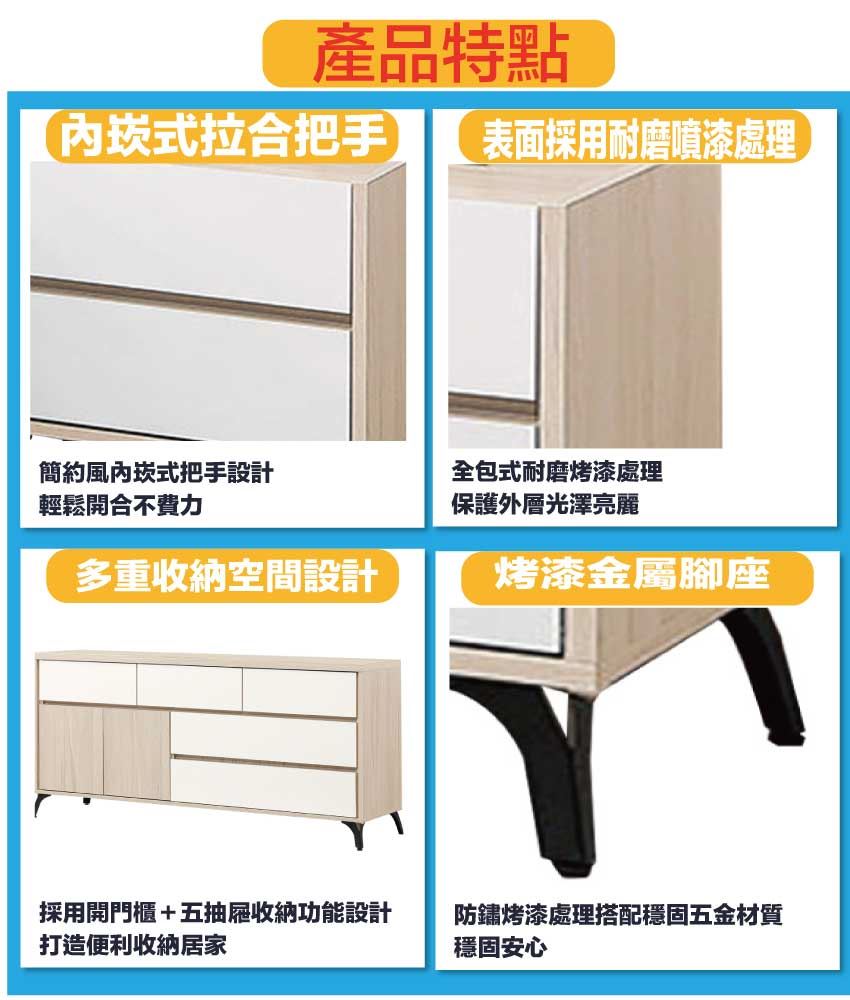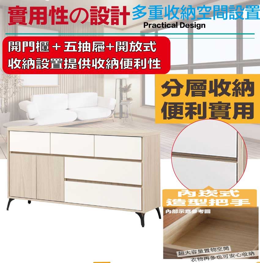 - ◆產品名稱:【綠家居】山多利雙色5尺二門五抽斗櫃