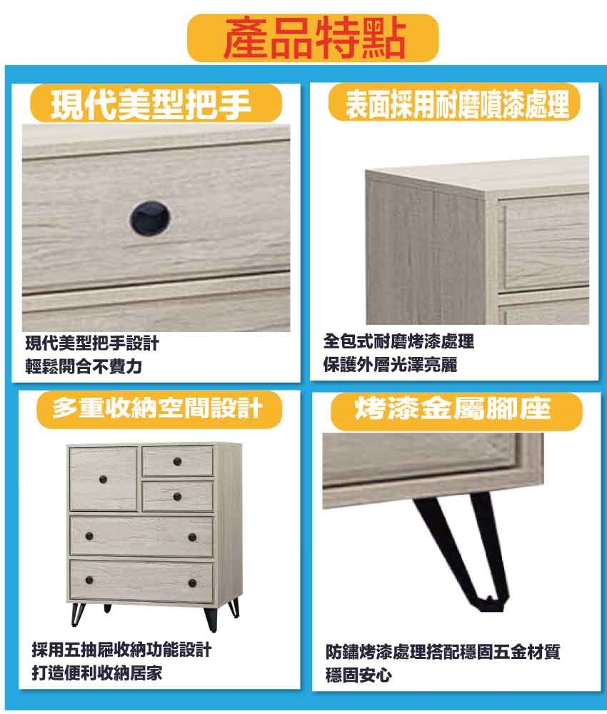 - ◆產品名稱:【綠家居】摩帝2.7尺五抽斗櫃