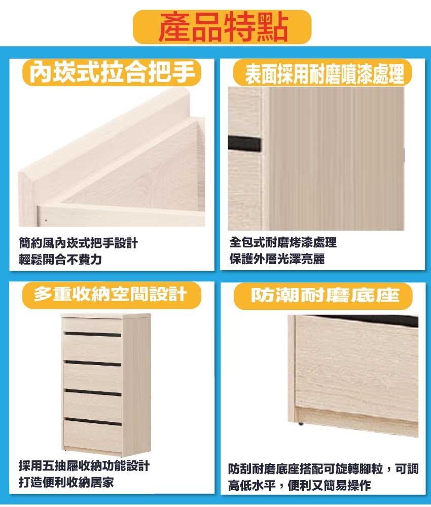 ★偏遠地區需額外加收運費,下標請先問與答詢問★ ★下訂前注意 由於商品流動較快,下訂前請先詢問是否有貨在下訂喔~★ 【綠家居】愛可2尺五抽斗櫃 淺橡木紋色系+現代簡約風格+安心材質製造,使用放心+搭配居家更便利,整體採用防蛀木心板+防潮耐磨底座(可調高低水平)等安心材質製造搭配外層採用防潮耐磨噴漆處理 ,採用五抽屜+開放式桌面等收納空間設計,全由專人配送到家,專業安心服務,替你省下更多時間!