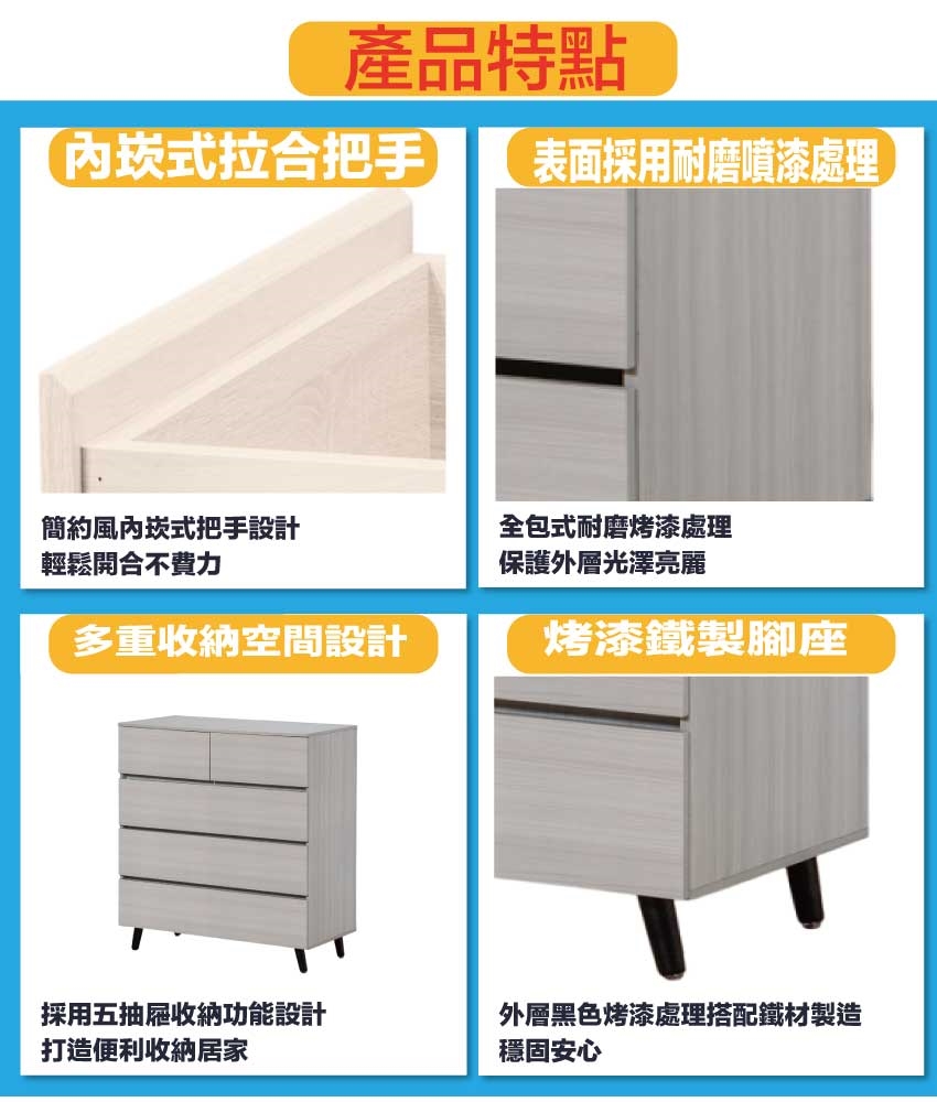 - 產品名稱:【綠家居】艾比3尺五抽斗櫃(二色可選)