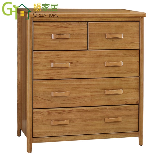 【綠家居】巴格3.5尺五抽實木斗櫃