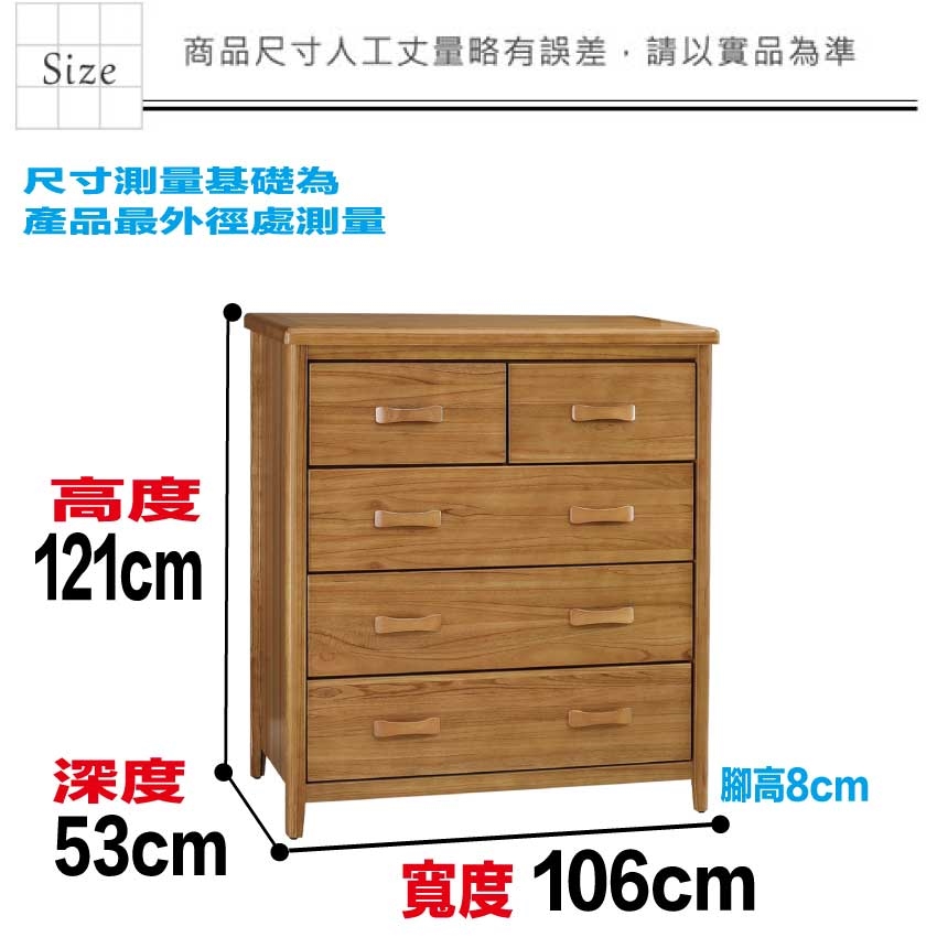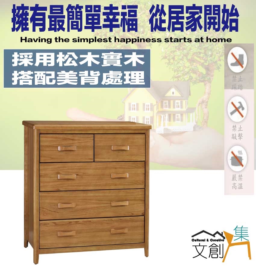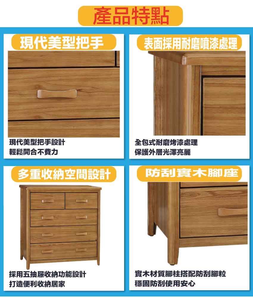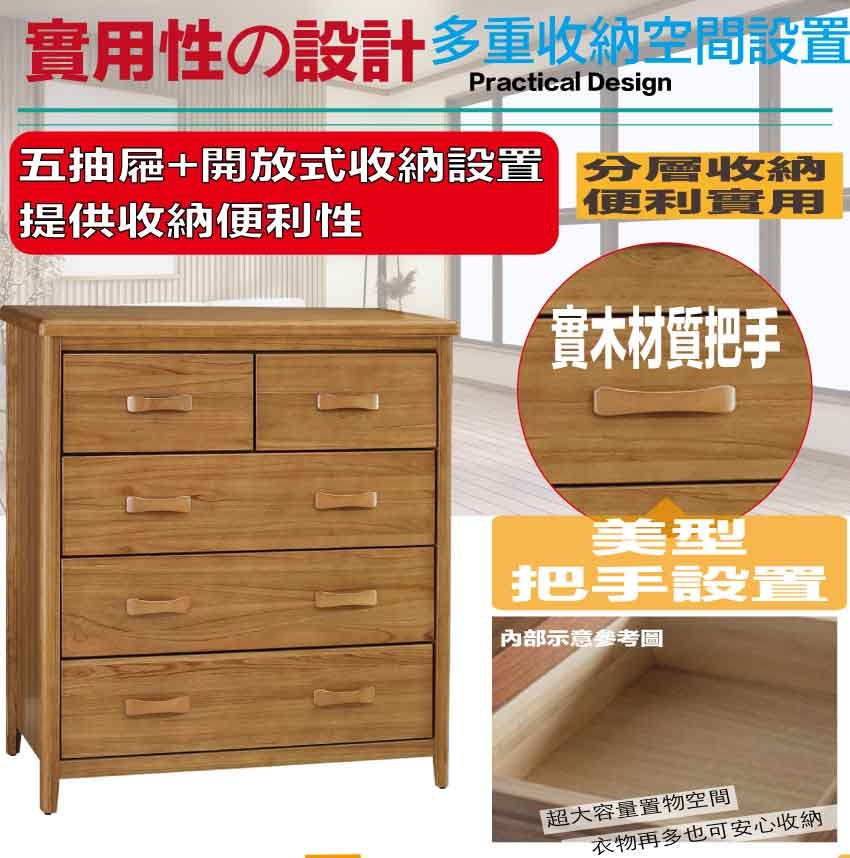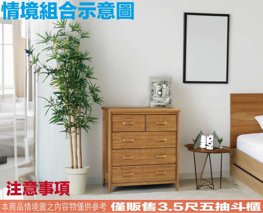 - 產品名稱:【綠家居】巴格3.5尺五抽實木斗櫃