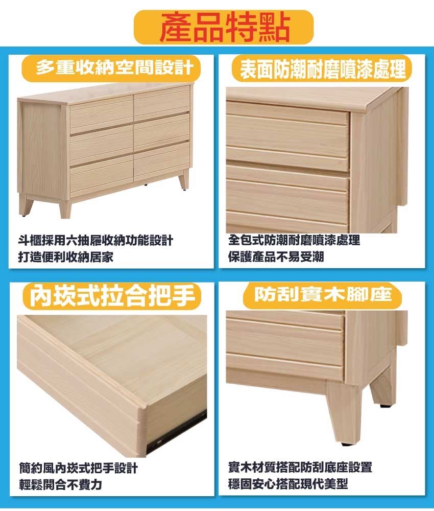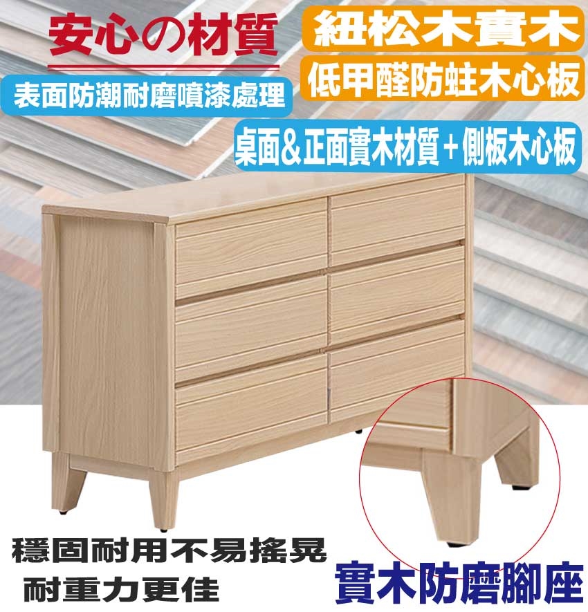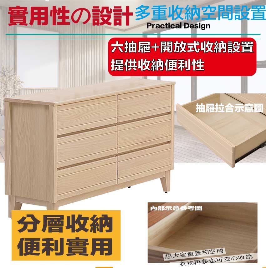 - ◆產品名稱:【綠家居】希望4尺實木六抽斗櫃