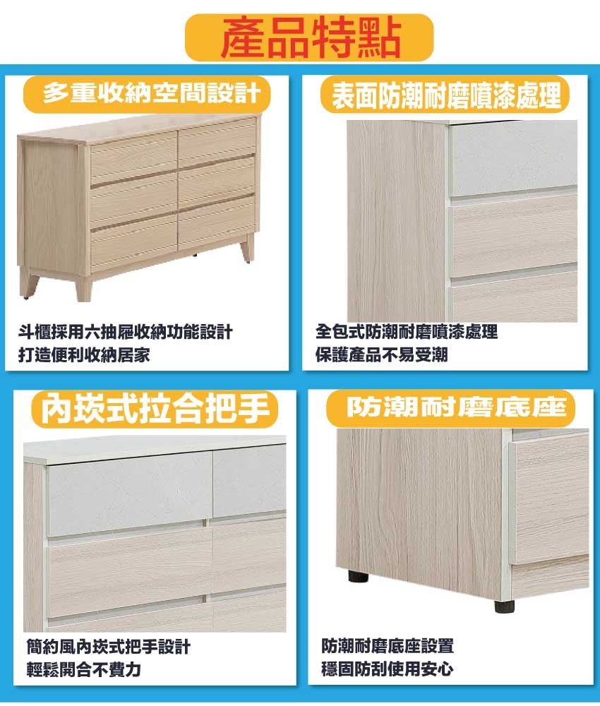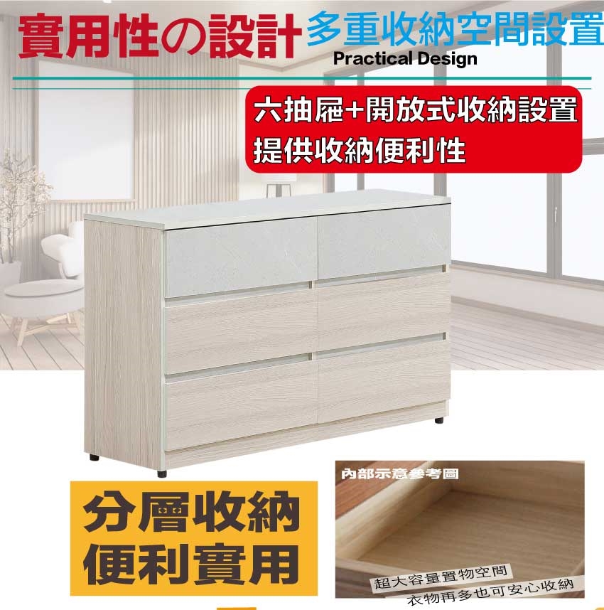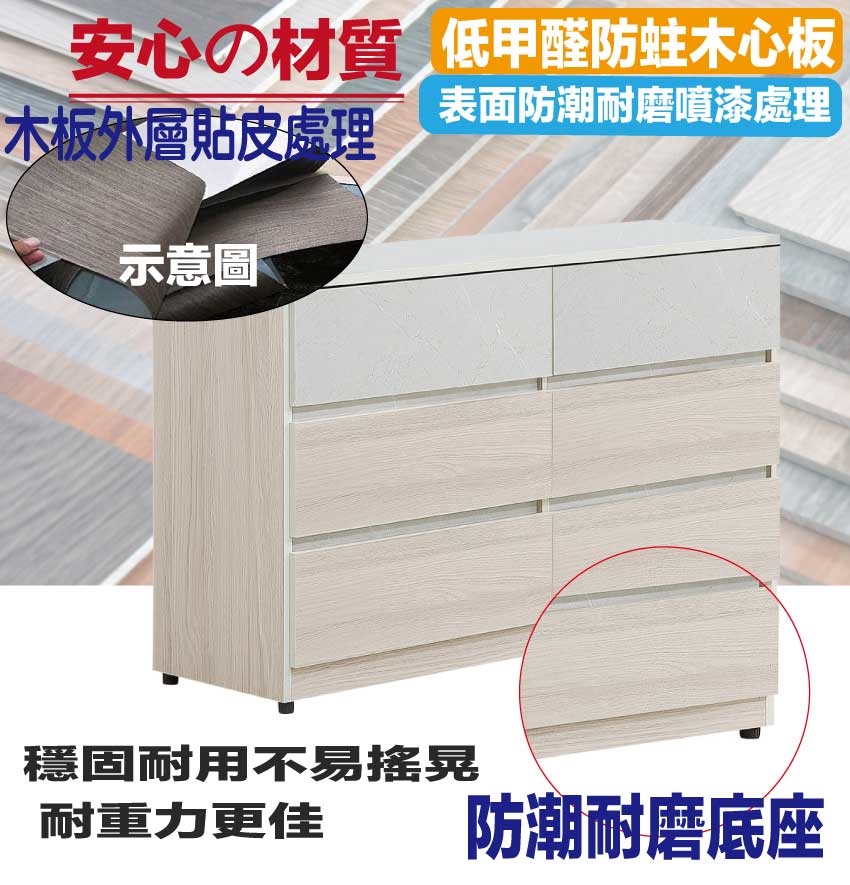 - ◆產品名稱:【綠家居】艾蘿4尺六抽斗櫃