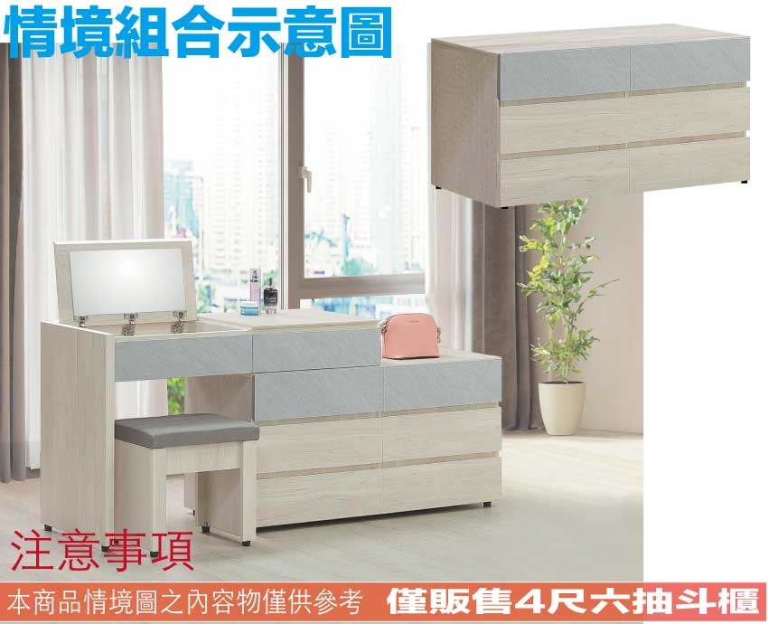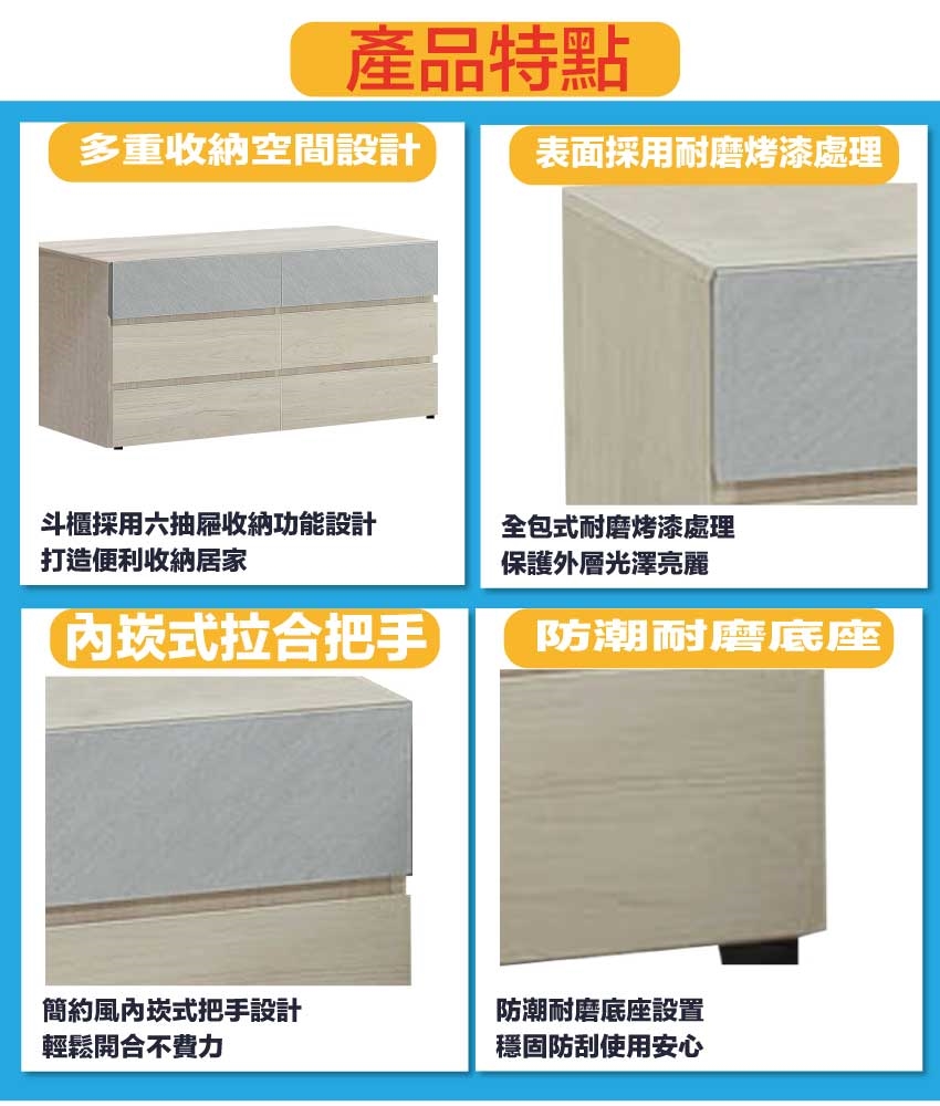 - ◆產品名稱:【綠家居】 莫森4尺六抽斗櫃