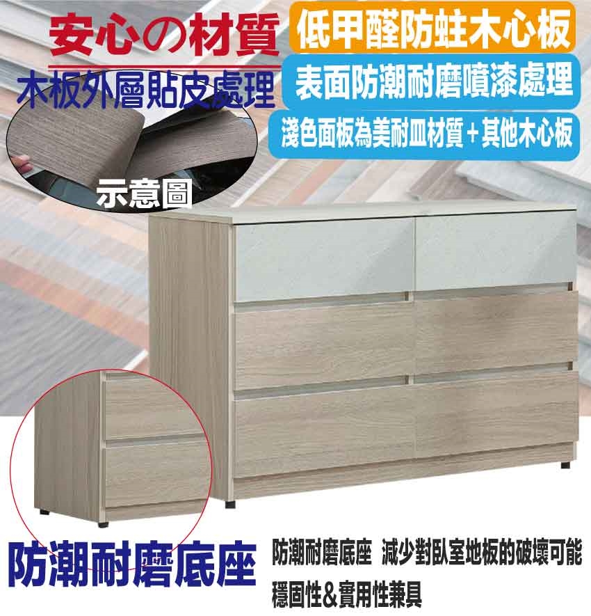 ★偏遠地區需額外加收運費,下標請先問與答詢問★ ★下訂前注意 由於商品流動較快,下訂前請先詢問是否有貨在下訂喔~★ 【綠家居】范巴4尺六抽斗櫃 木紋雙色系+安心材質製造,使用放心+搭配居家更便利,採用防蛀木心板+防潮耐磨底座+五金滑軌結構+耐磨美耐皿(淺色面板)等安心材質製造 ,外層採用防潮耐磨噴漆處理搭配採用六抽屜+開放桌面等收納空間設計,全由專人配送到家,專業安心服務,替你省下更多時間!
