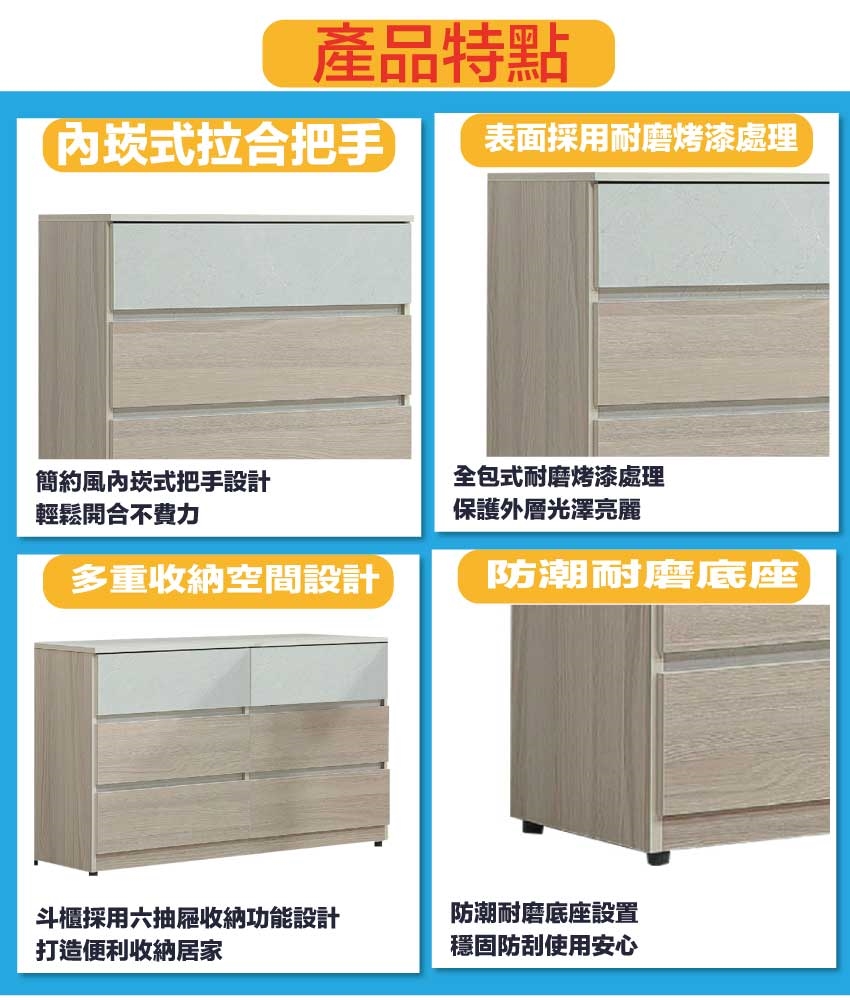 - ◆產品名稱:【綠家居】范巴4尺六抽斗櫃
